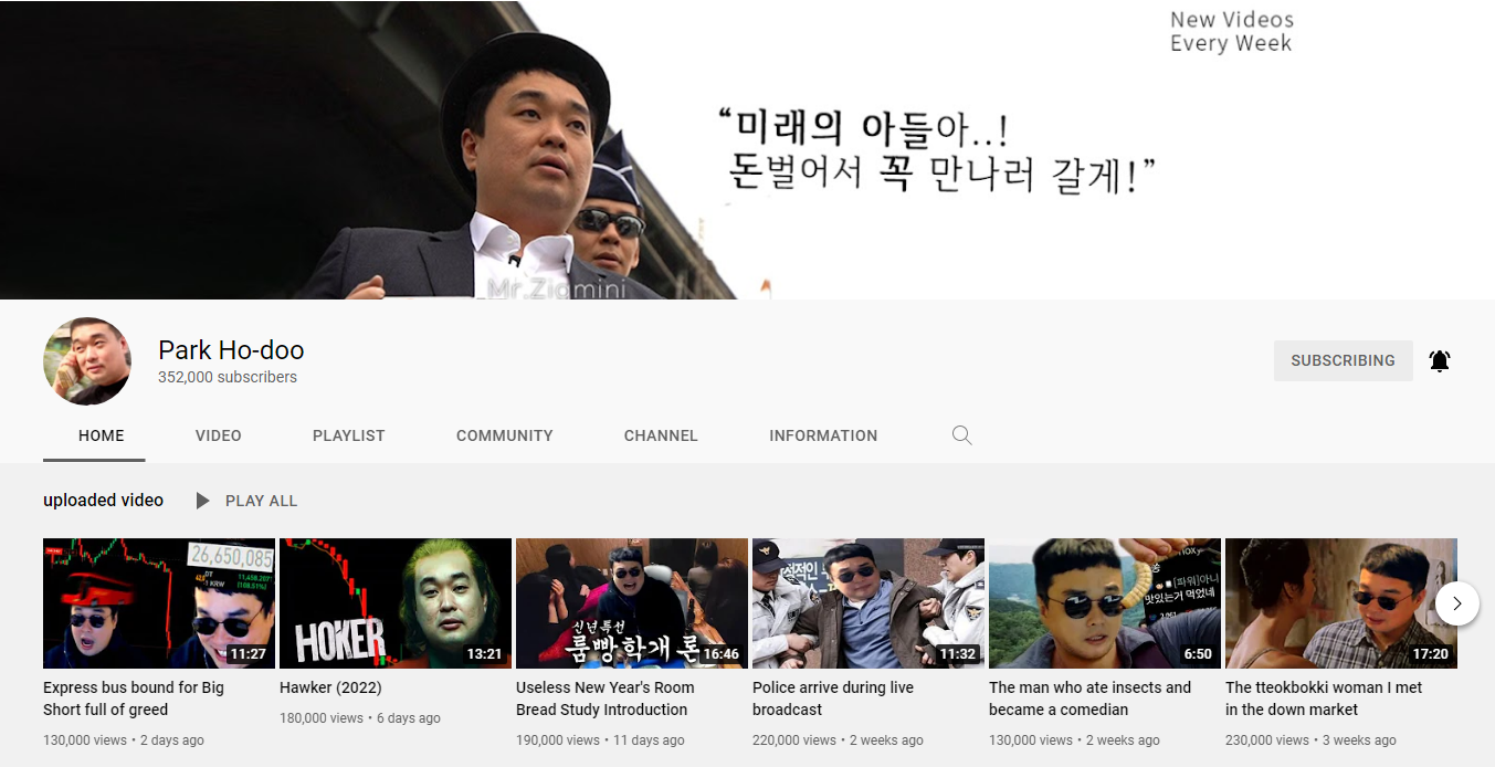 1. The first. chart sexer that is famous overseas!? Ho-Doo Park https://www.youtube.com/channel/UC9KQaCA_EMobJUxZszQ4wlg