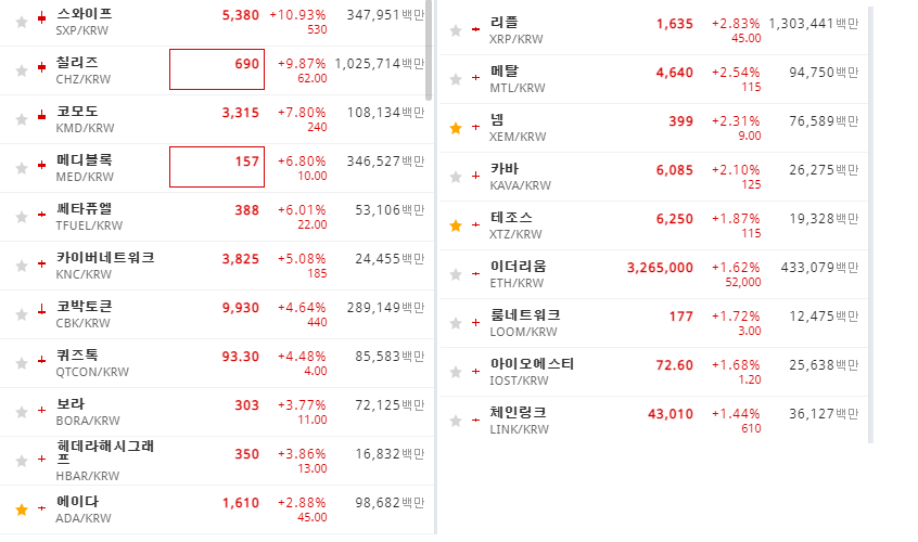 알트코인들이 많이 늘어난 상태입니다.