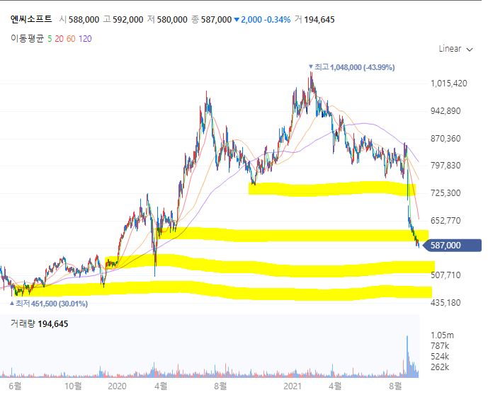 그리고, 그 동안 엔씨소프트를 지지하고, 자칭 개돼지라고 불리던 열성 유저들이 잘못된 운영에 실망하고 모두가 돌아서는 상황이 발생하면서 2021년 초에 달성한 100만의 주가를 반토막까지 만들어버리는 상태가 되어버렸다.