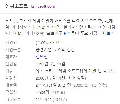 게임을 좋아하는 주식투자 30~50대 주주라면, 엔씨소프트(NCSOFT)를 한번도 보지 않은 사람은 없을 것이다.