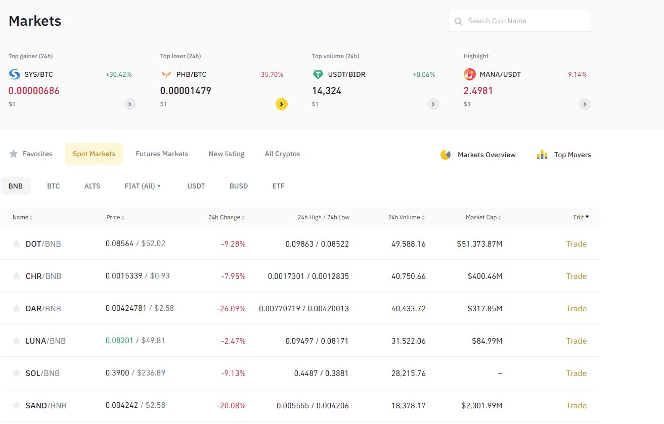 1) 세계 대표 거래소를 구축하였고, 대다수의 코인이 BNB를 통하여 전환이 가능하다