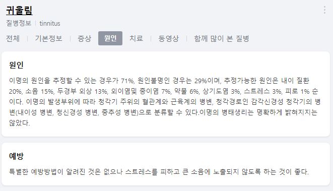 Tinnitus is medically defined as a persistent sound in the ears or in the head. Most people have tinnitus of less than 20db (decibel), but there are not many tinnitus enough to feel sensitive. Usually, the cause of tinnitus is the physical shock of the 'ear, brain' part... But if it occurs naturally, it is difficult to understand why.