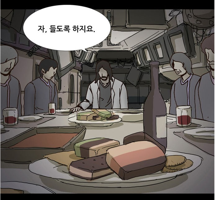 식량은 이제 얼마 남지 않게 되어 남은 승무원들은 최후의 만찬을 함께 하게 됩니다.