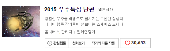 이번에 소개해 드릴 웹툰은 네이버웹툰으로 2015년 우주특집 단편에 포함 된 웹툰입니다.