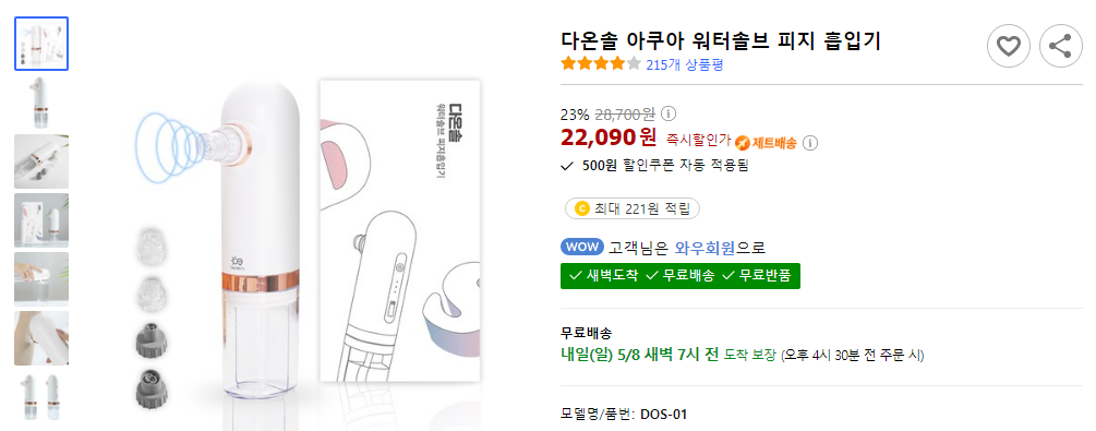 이제 본론으로 들어가서, 오늘 구매해 본 상품은 제목의 기종과 같이 '다온솔 워터솔브 피지흡입기'입니다.