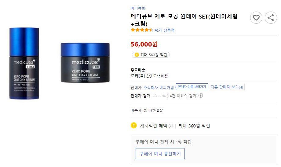 홈페이지에서 메디큐브 모공제로 세트를 보자마자