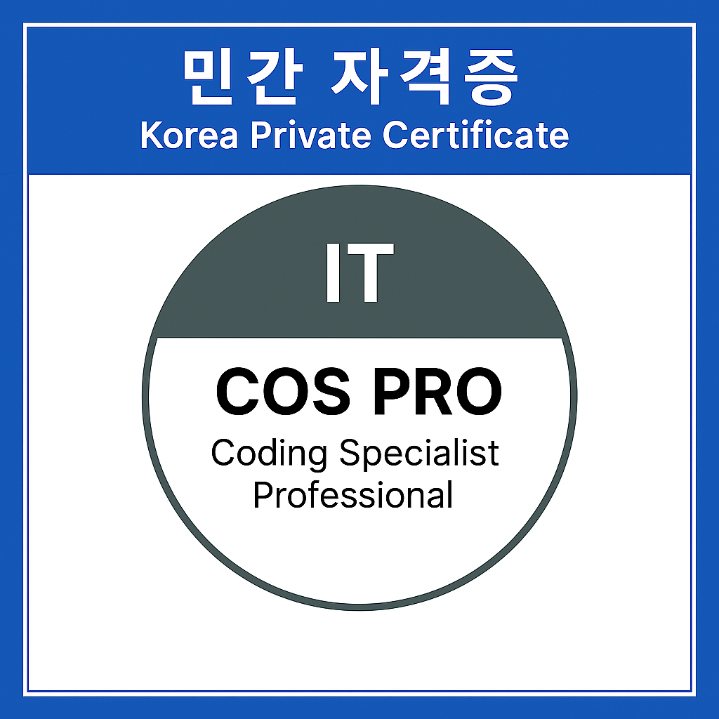 **COS PRO (Coding Specialist Professional)**는 YBM이 등록한 민간 IT 자격증으로 C, C++, C#, Java, Python 언어 기반의 절차지향 프로그래밍 능력을 평가하기 위해 설계된 시험입니다. 주 대상은 대학생, 취업준비생, 비전공자 등 20~30대 응시자가 많으며, 실제 직무에서 활용되는 수준의 코드 작성 역량을 검증할 수 있습니다. 시험은 CBT(Computer Based Test) 방식으로 100% 컴퓨터 기반으로 진행되며, 객관식과 일부 주관식 문제를 포함한 총 10문항을 50분(2급·3급)/90분(1급) 내에 해결해야 합니다.